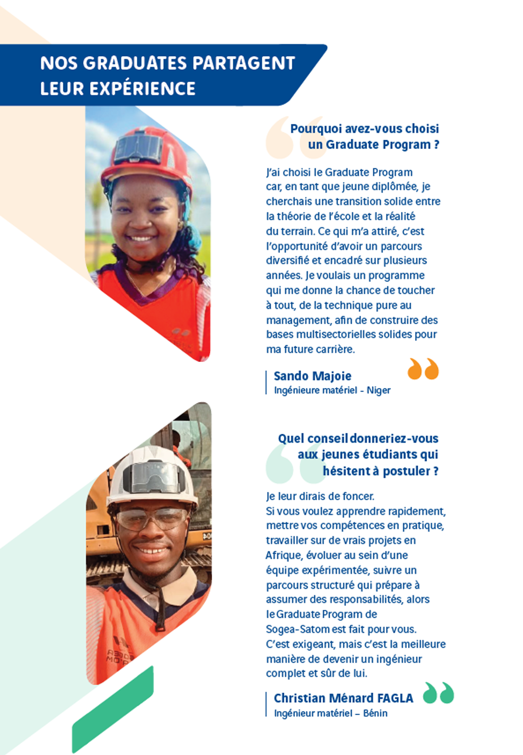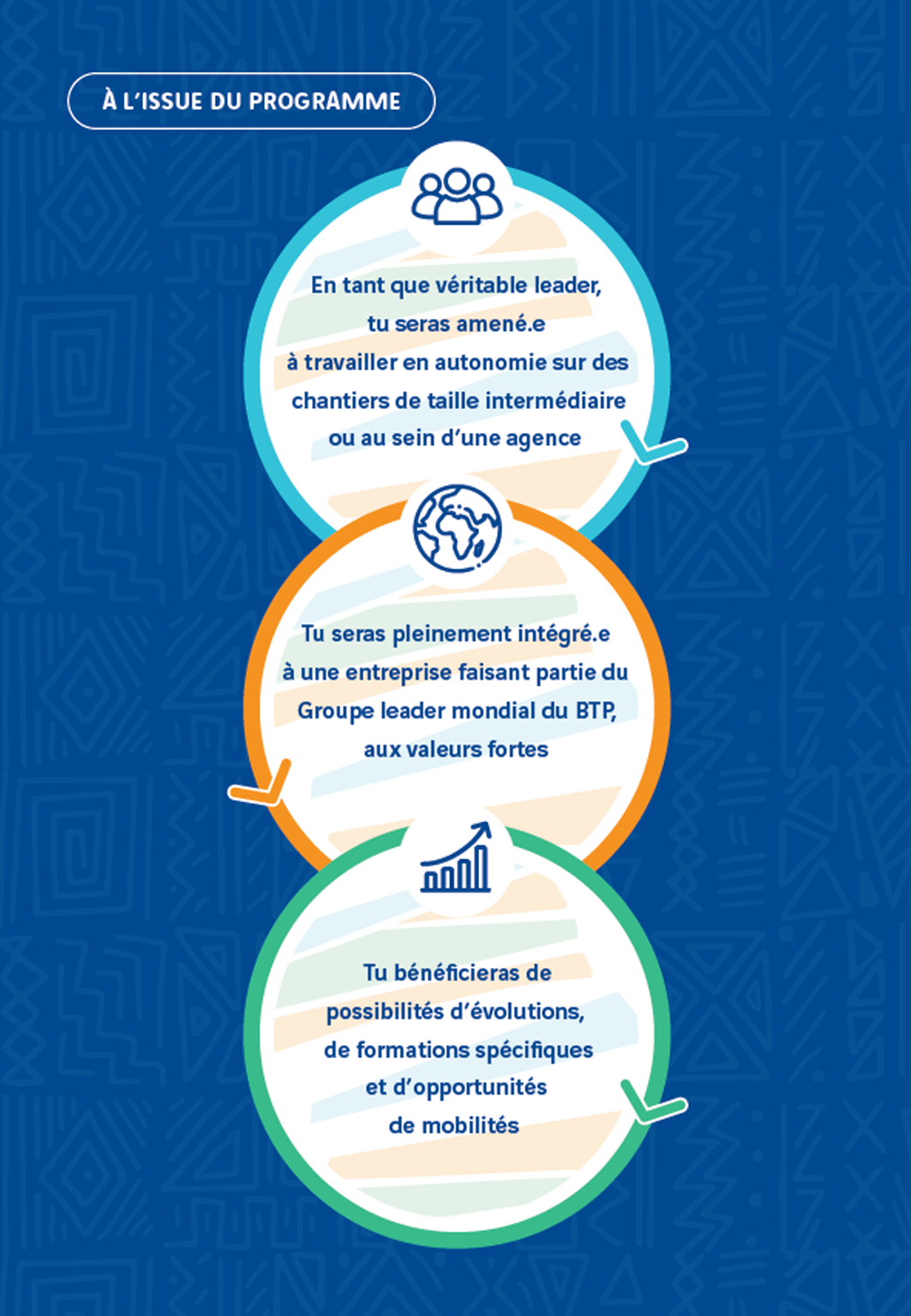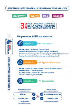 Le Graduate Program de Sogea-Satom, African Builders Program, c’est intégrer une formation spécialisée en 3 ans et destinée à des jeunes diplomé·es. Un parcours sur-mesure pour découvrir les métiers de la construction sur plusieurs territoires.